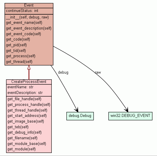 debug Debug object that received the event. (Inherited from winappdbg.event.Event) |