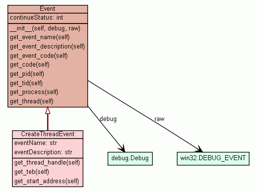 debug Debug object that received the event. (Inherited from winappdbg.event.Event) |
