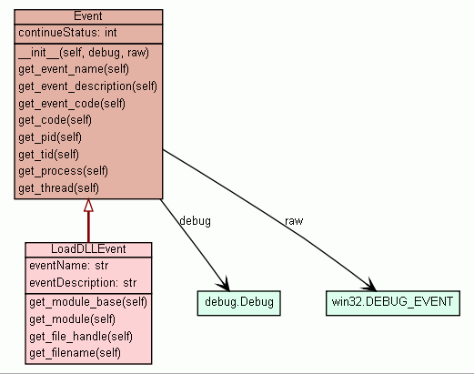 raw Raw DEBUG_EVENT structure as used by the Win32 API. (Inherited from winappdbg.event.Event) |