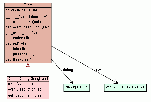 debug Debug object that received the event. (Inherited from winappdbg.event.Event) |