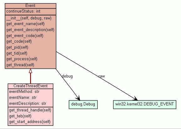 debug Debug object that received the event. (Inherited from winappdbg.event.Event) |