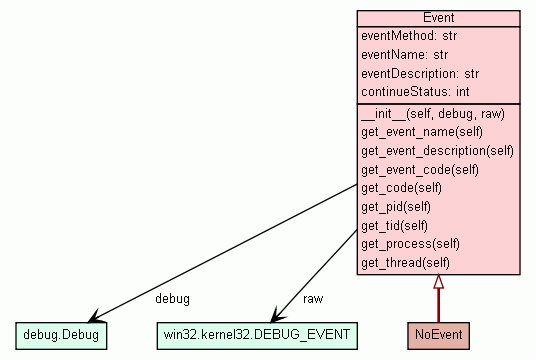 raw Raw DEBUG_EVENT structure as used by the Win32 API. |