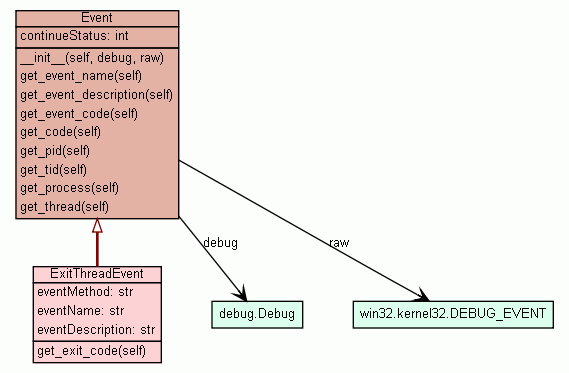 raw Raw DEBUG_EVENT structure as used by the Win32 API. (Inherited from winappdbg.event.Event) |