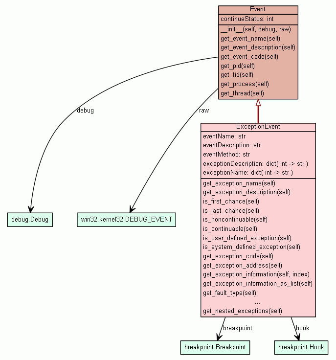 debug Debug object that received the event. (Inherited from winappdbg.event.Event) |
