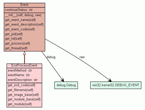 debug Debug object that received the event. (Inherited from winappdbg.event.Event) |