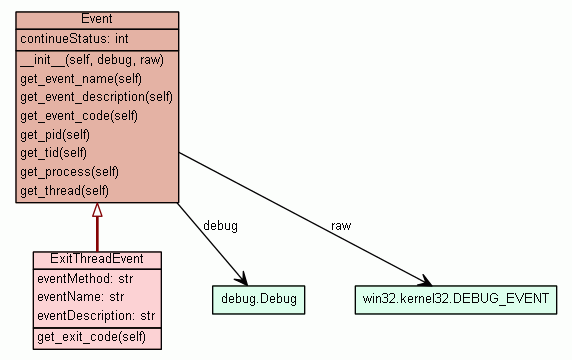raw Raw DEBUG_EVENT structure as used by the Win32 API. (Inherited from winappdbg.event.Event) |