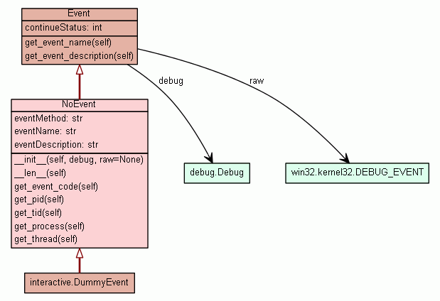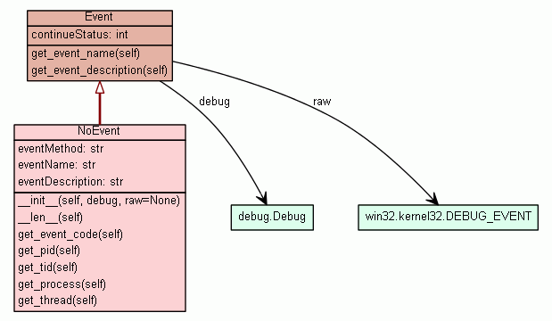 debug Debug object that received the event. (Inherited from winappdbg.event.Event) |
