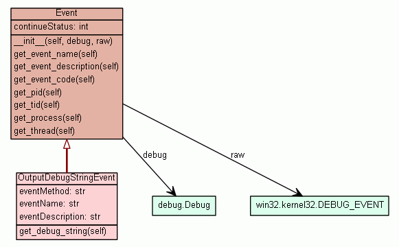 debug Debug object that received the event. (Inherited from winappdbg.event.Event) |